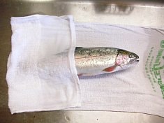 魚は、タオル、キッチンペーパ、新聞紙などで包みます。